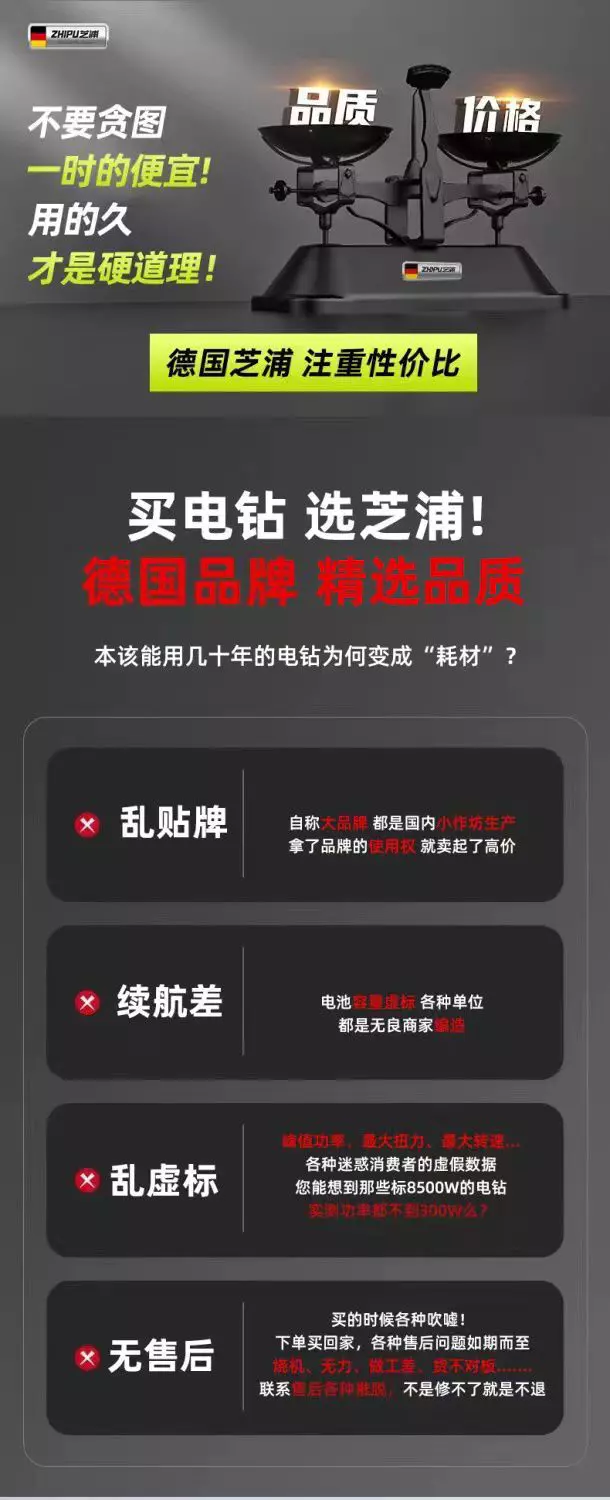 芝浦手电钻锂电钻大功率家用冲击充电钻打墙锂电池手枪钻电动螺丝