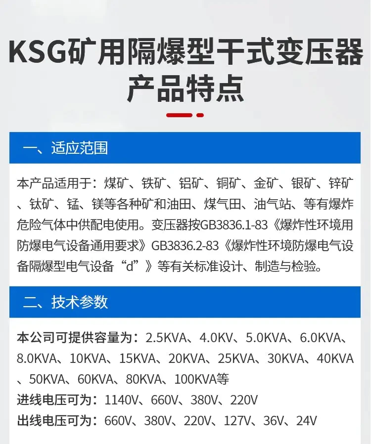 KSG矿用隔爆型干式变压器 煤矿井下使用 有KA、KY认证 方便安装 - 图片 2